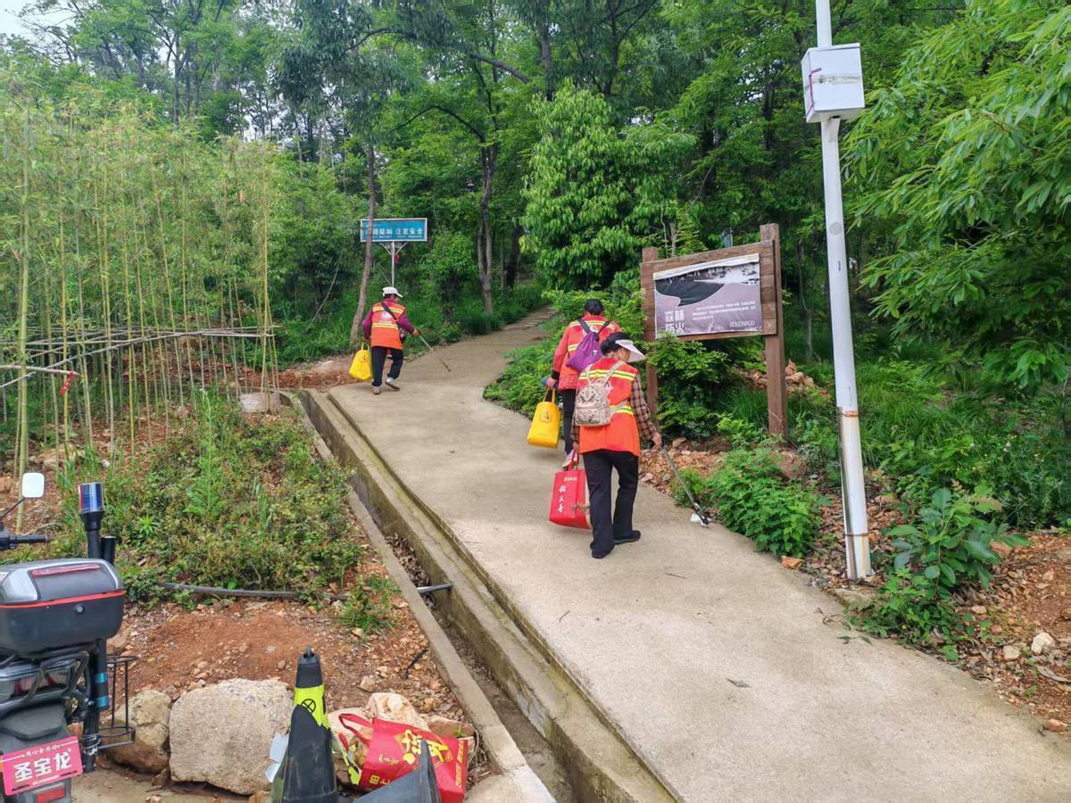 他们每天往返山上山下四趟,步行里程超过50000步,这相当于30多公里。从山脚步道入口,到山顶观景平台,再到密林深处的偏僻角落,他们一次次弯腰、伸手,从草丛中捡起烟头,从石缝里夹出纸屑,从路边拾起饮料瓶。一袋袋垃圾被背下山,换来的是山路的洁净与清爽。